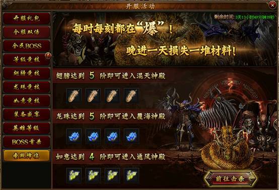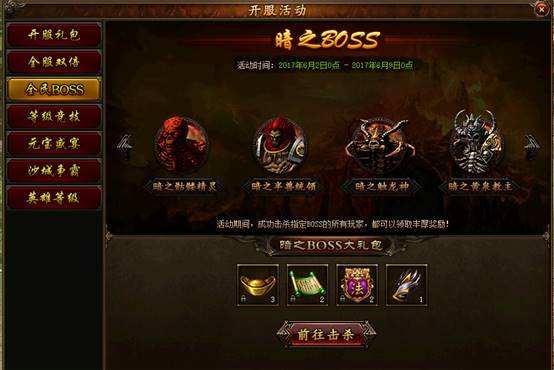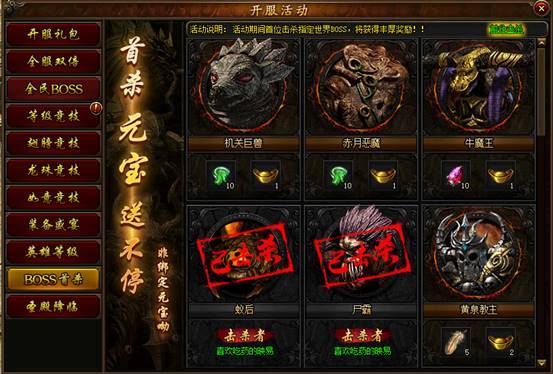 活动期间击杀特定BOSS组,会获得丰厚大礼。