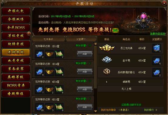 活动期间,龙珠等级达到系统指定等级即可获得龙心豪礼。