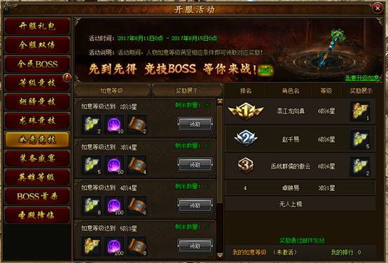 活动期间,如意等级达到系统指定等级即可获得如意奖励。