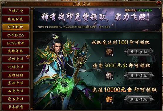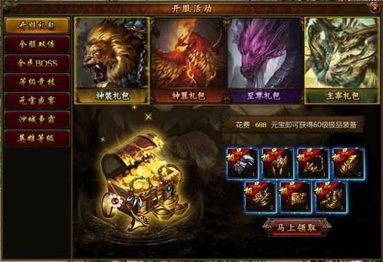 活动期间,玩家可以凭借少量元宝可以购买初期神装礼包以及各种稀有道具哦。