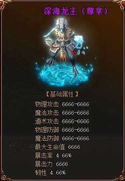 属性:攻击6666-6666、防御6666-6666、生命值6666、暴击伤害6666、暴击率4.66%、韧性4.66%