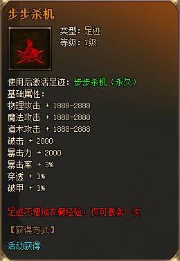 属性:物防3666-3666、魔防3666-3666、致命抵抗3666、生命值3666