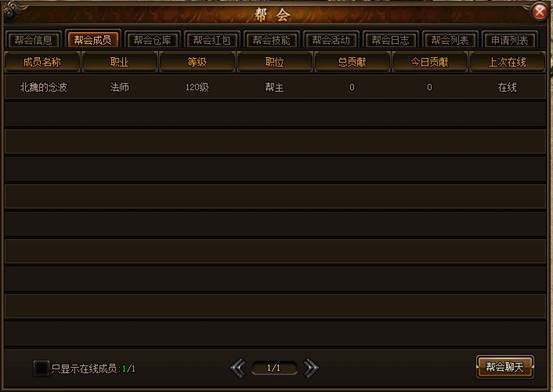 帮会成员界面中记录着帮会内所有成员的信息,以及在线状态,也可以打开帮会专属的聊天界面