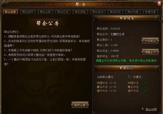 3、帮会明日天都会消耗一定的帮会资金来维护整个帮会正常运转;
