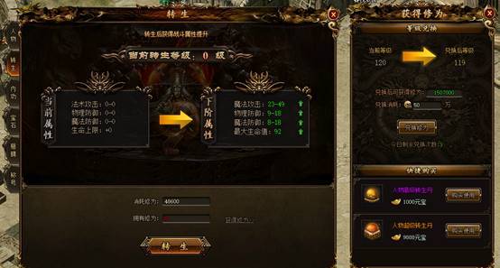 玩家可以消耗修为值来提升转生等级,修为值可以通过使用转生丹和降低玩家等级来获得