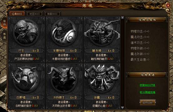 玩家击杀BOSS后除了拾取BOSS掉落的奖励一定不要忘记去搜集BOSS的信物,搜集BOSS的信物可以在炼魂界面中进行激活来获得强力的属性加成