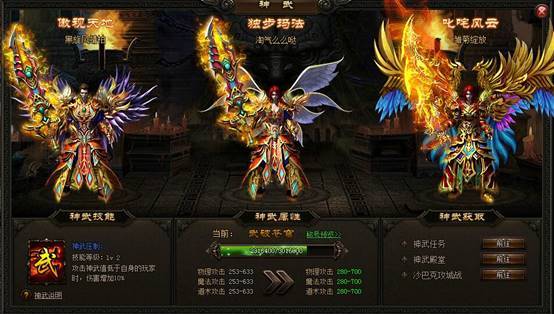 获得神武可以获得“压制”BUFF,对神武等级低于自身的玩家增加伤害。